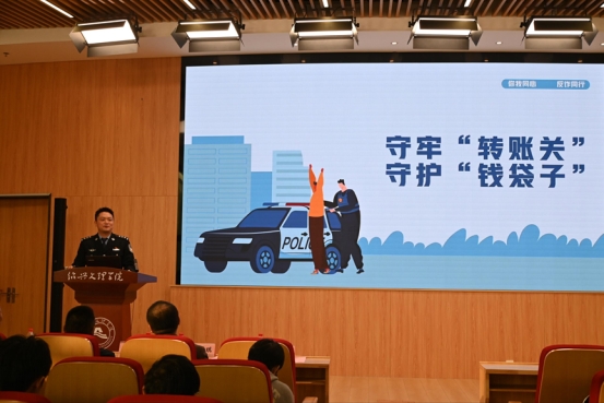最后,技侦支队副大队长金益萍带来了一场生动的防诈骗知识讲座。通过鲜活的案例剖析和视频展示等形式,为师生送上"防骗指南宝典"。