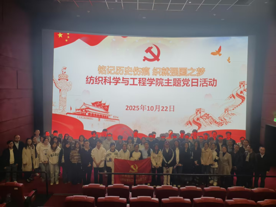 为纪念中国人民抗日战争暨世界反法西斯战争胜利80周年,强化爱国主义教育,10月22日下午,纺织科学与工程学院党委组织师生党员开展“铭记历史伤痕,织就强国之梦”主题党日活动,集体观看历史题材电影《731》。学院党委班子成员、各支部党员及第62期入党积极分子培训班学员等70余人参加。