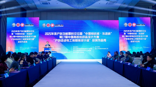 在主题论坛环节,青岛大学纺织服装学院张传杰教授团队的副教授郭肖青以《户外面料功能化技术与进展》为题,系统阐述了当前户外功能面料的技术路径与发展趋势。浙江东进新材料有限公司研发经理乔路阳则围绕《功能新材料赋能高端户外服装》,分享了企业在新材料研发与产业化方面的实践成果,引发与会嘉宾的深入交流。