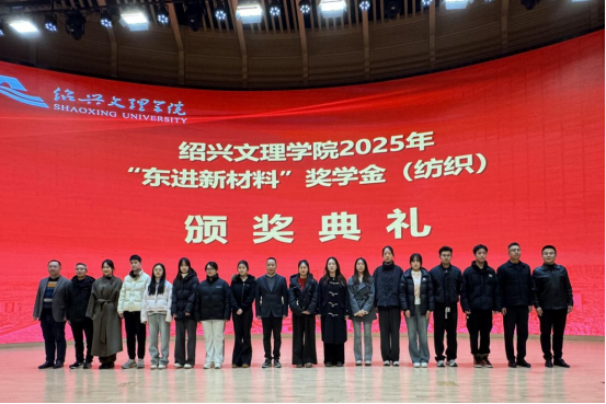 此次颁奖典礼不仅是荣誉的授予,更是纺织科学与工程学院近年来持续深化产教融合、推动校企协同育人的一个生动缩影。学院与浙江东进新材料有限公司的合作由来已久,双方以“科教融汇、产教融合、协同育人”为纽带,在人才培养、科技创新、社会服务等方面开展了全方位、深层次的合作。浙江东进新材料有限公司连续四年冠名赞助由中国轻纺城与绍兴文理学院联合主办的“东进杯”中国高校纺织品设计大赛,累计投入超百万元用于学生竞赛、奖励与人才培养。目前学院已有4位博士进入企业博士后流动站开展课题研究,1位博士在企业建立市级博士创新站并入选省级站。双方合作项目先后荣获中国纺织工业联合会科技进步二等奖、浙江省科技进步三等奖等多项荣誉。在就业联动上,浙江东进新材料有限积极吸纳学院毕业生,近三年累计招收我院本科生10人、研究生2人,目前公司员工中我校毕业生占比已超5%。