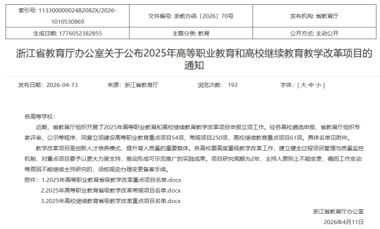 近日,浙江省教育厅办公室正式公布《2025年高等职业教育和高校继续教育教学改革项目立项名单》,由我院徐小萍老师主持,邹专勇、占海华、葛烨倩、罗玉成等老师共同参与的项目——《教科人一体化背景下高校继续教育办学机制创新与探索——以纺织智造现代产业学院为例》(项目编号:JGZD2025016JJ)成功获批省级重点项目。项目立足纺织智造产业需求,依托现代产业学院平台,探索产教融合、科教融汇的继续教育办学新机制,服务地方纺织行业人才培养。